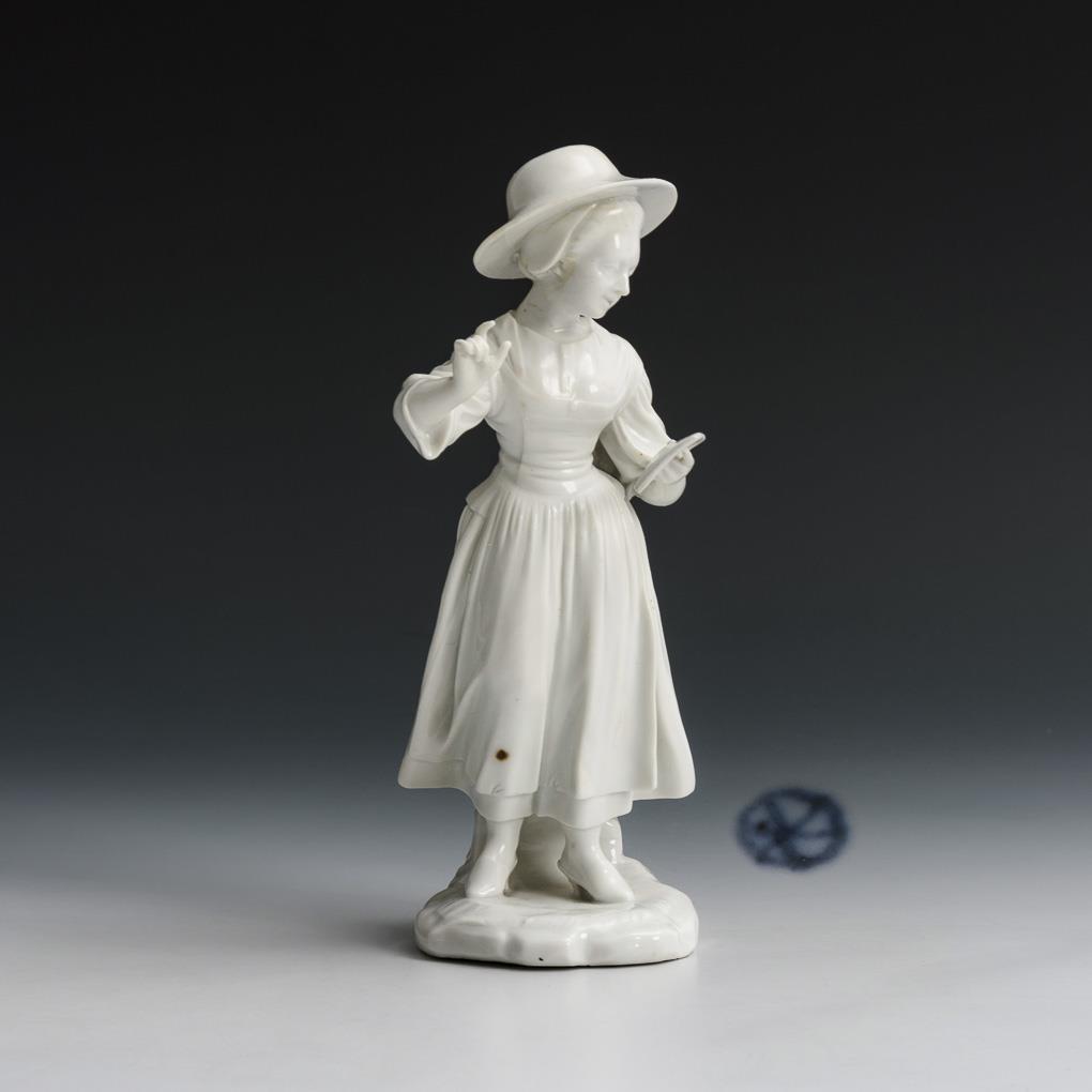 Standing girl reading from a letter. Hat, left hand with letter and right hand restored.