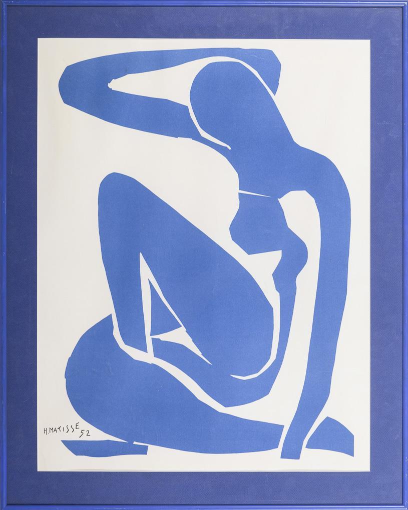 From a series of about 12 abstract female nudes, originally cut from blue colored paper, which are among the last works of the artist. He called this technique "drawing with scissors". Sheet creased.
