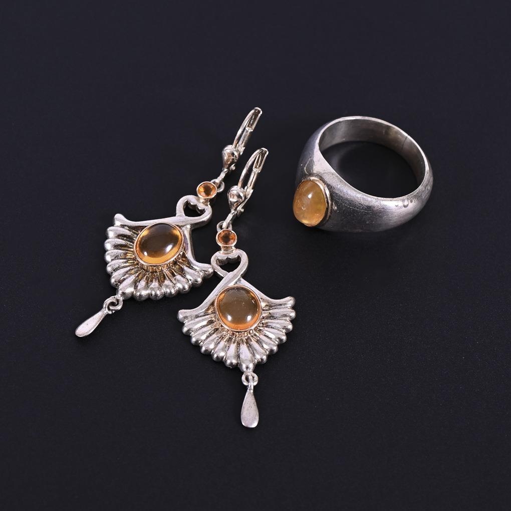 Silver 925 stamped. Ring size 57. earrings L 5 cm. 8,6/7,6 g.