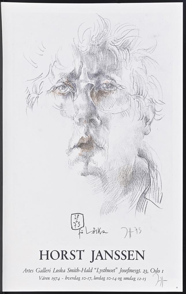 Exhibition poster "Horst Janssen - Artes galleri Loska Smith-Hald 'Lysthuset' Oslo", 1973, sheet: 64 x 41 cm | "Farewell to Kerstin", 1979, sheet: 58 x 40.8 cm. Each minimally creased.