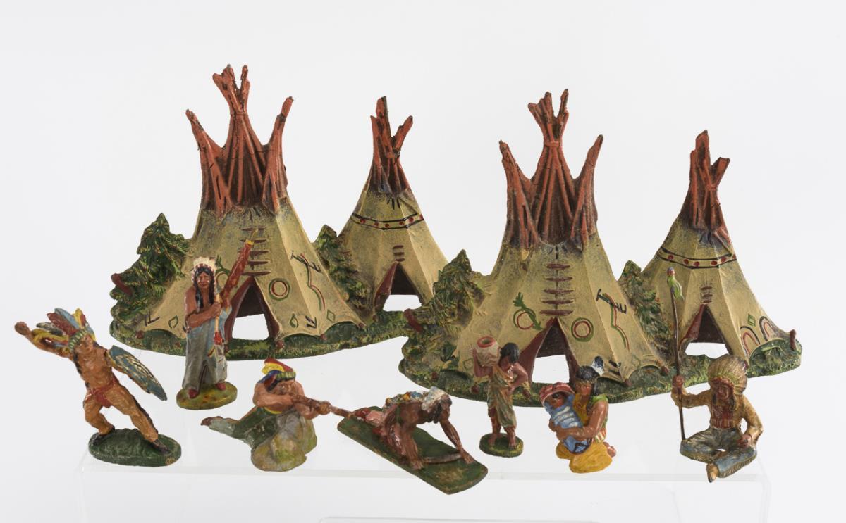 Convolute Indian figures and tents. Elastolin, O. & M. Hausser.