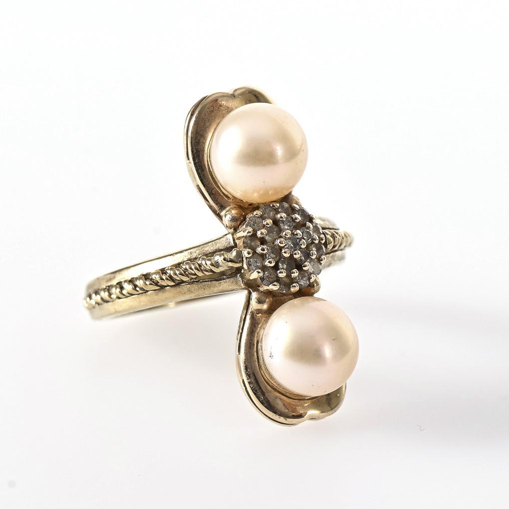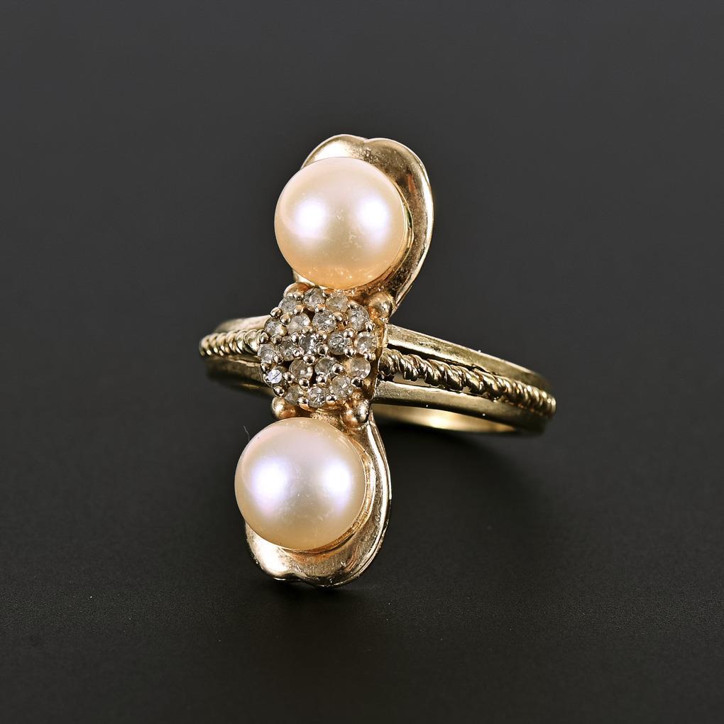 Ring with cultured pearls and diamonds.