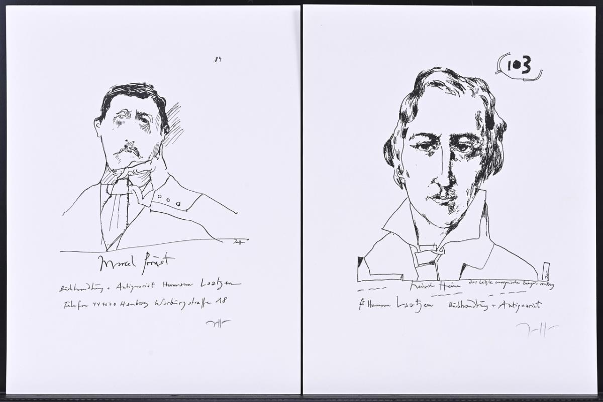Marcel Proust, Heinrich Heine, Heinrich Mann and Adalbert Stifter from the series "Dichterköpfe" for the bookstore Hermann Laatzen.