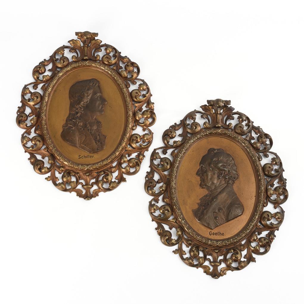 Pair of cast iron wall reliefs: Goethe and Schiller. Eisenwerk Lauchhammer.