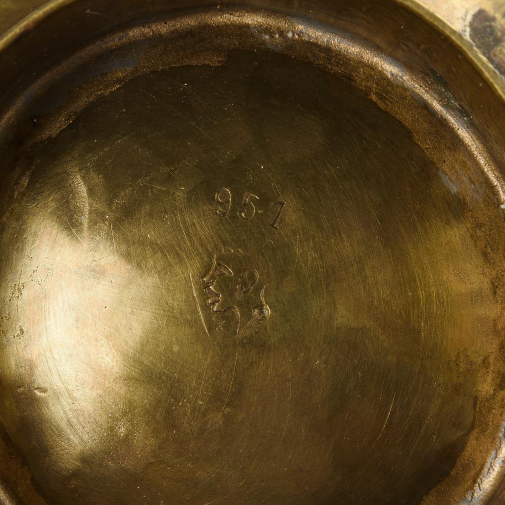 Georg von Mendelssohn (1886 - 1955) was a student of the Debschitz School. Under the influence of Riemerschmid, he shifted to brass drift work and became a member of the Deutscher Werkbund. Since 1910 he worked in the artists' colony Hellerau near Dresden / Eva von Stössel was one of the few metalsmiths in the haze of the artists' colony Dresden-Hellerau and the German Werkbund at the time of the Bauhaus, her temporary husband was Georg von Mendelssohn.