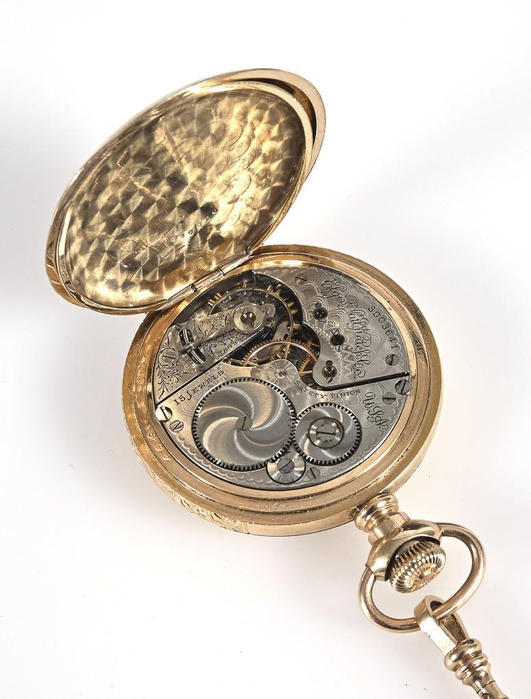 Elegant Savonnette with chain in case. ELGIN International Watch Co.