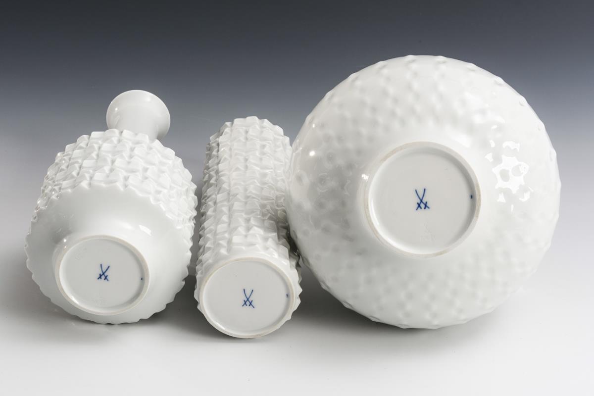 3 white vases. Meissen.