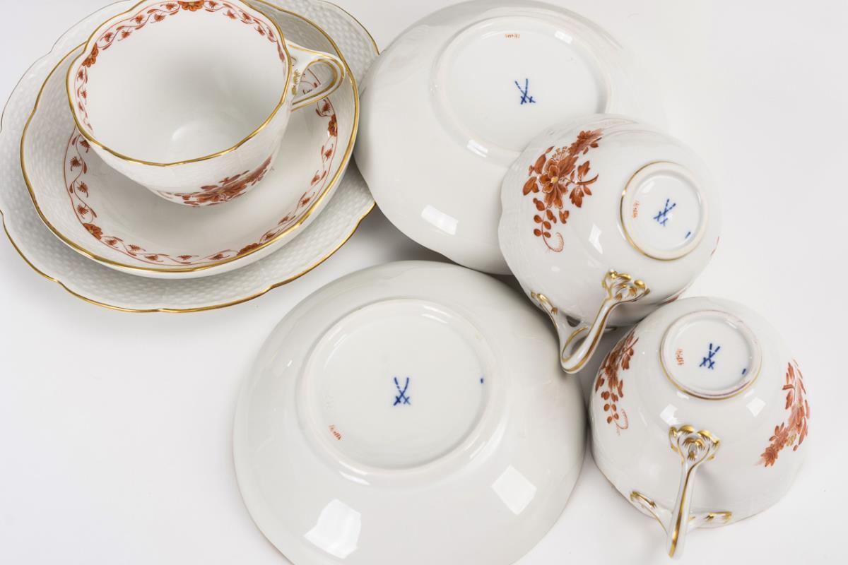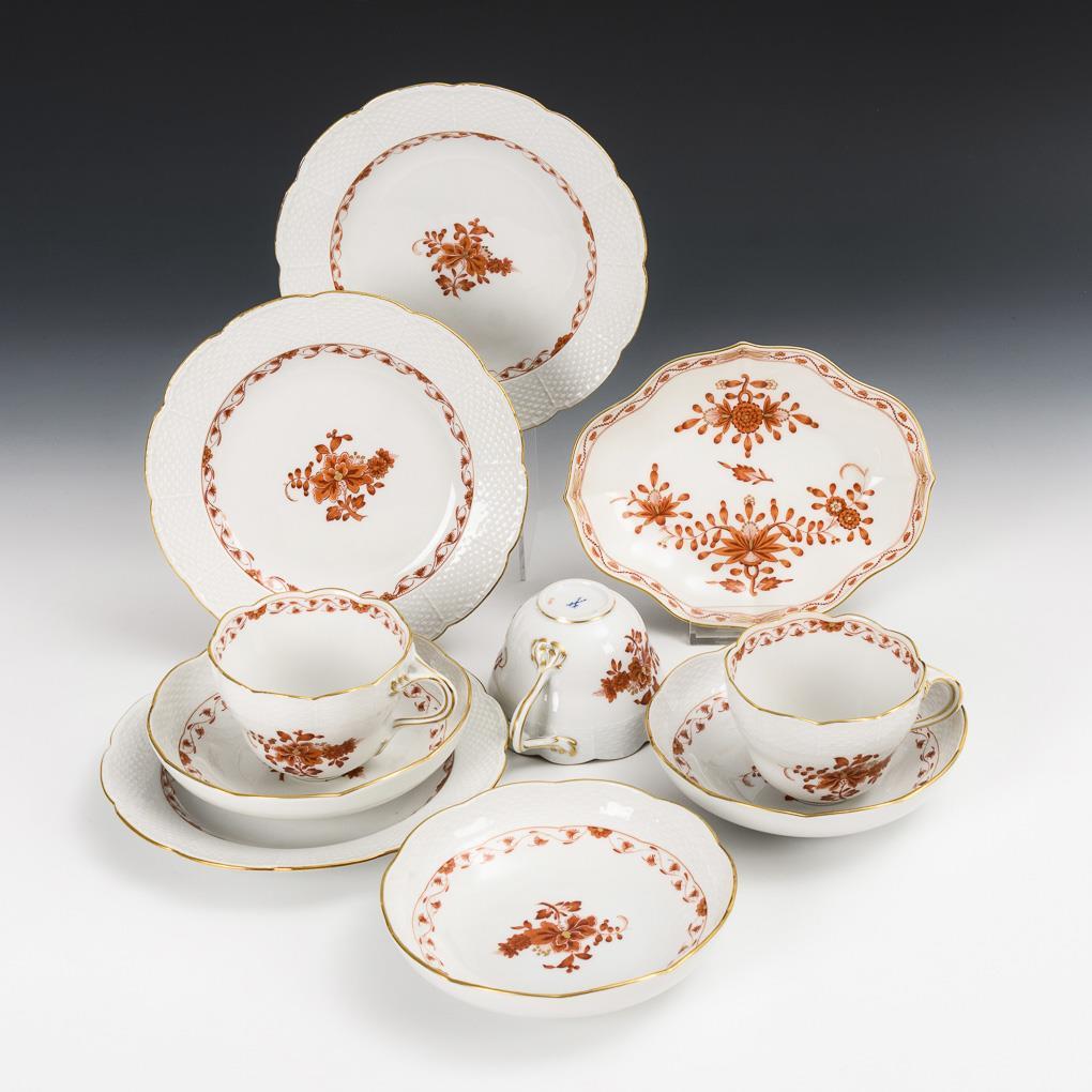 3 place settings and 1 bowl "Indian Red". Meissen.