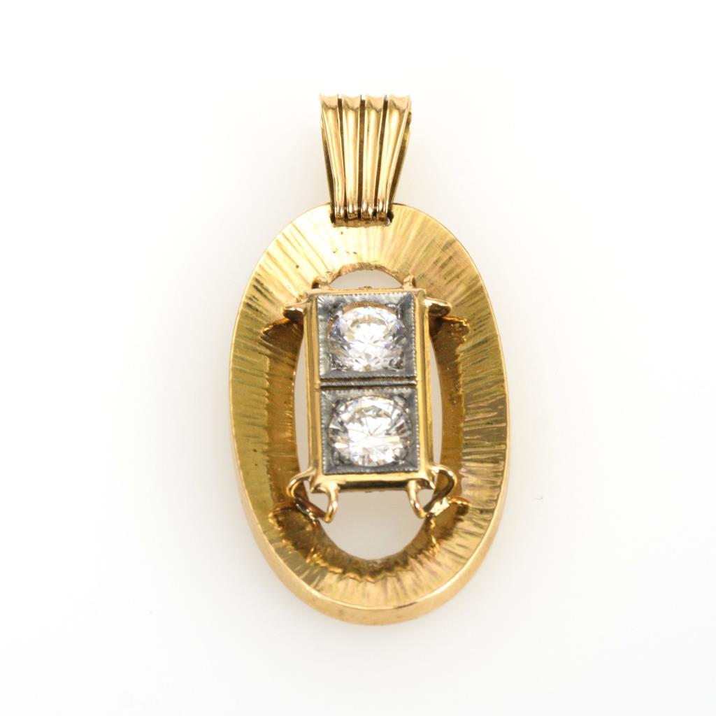 Strahlenartig reliefierter Rahmen mit 2 Diamant-Imitationen in Carreaufassungen.