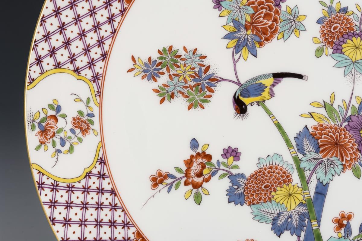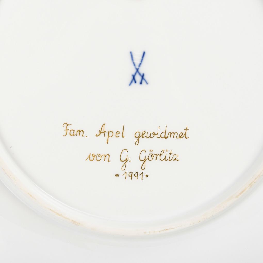 Flat plate with Indian floral and bird painting; verso inscribed "Fam. Apel gewidmet von G. Görlitz 1991".