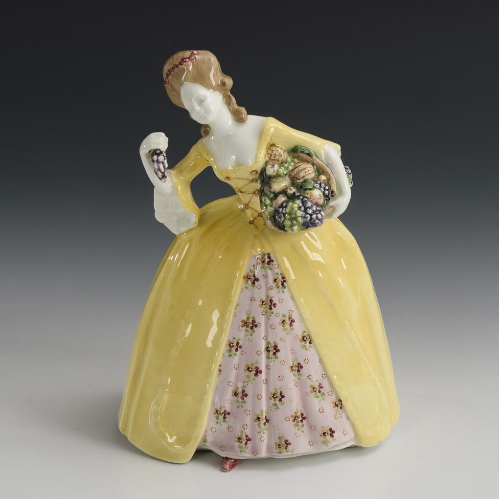 Standing rococo lady with fruit basket (autumn). Viennese manufacture Friedrich Goldscheider.
