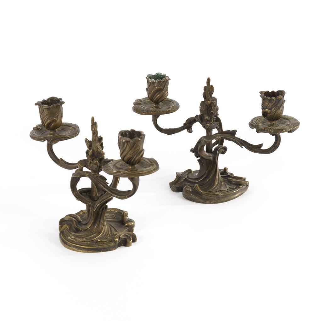 Pair of 2-flame candlesticks in rococo style.