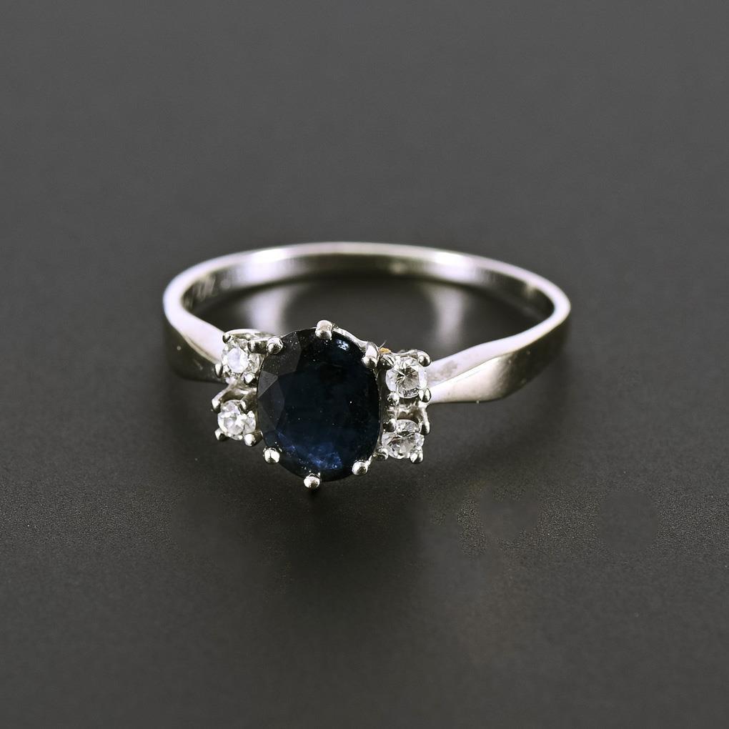 Chaton set sapphire and 4 small diamonds, between narrow rail.
