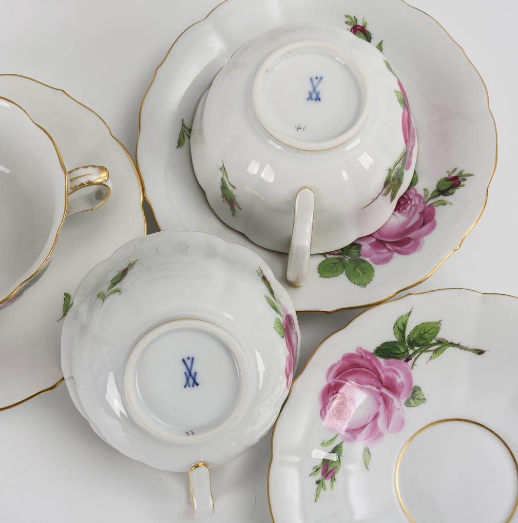 26 pieces. Form "New cutout". Teapot (h 15 cm), 8 cake plates, 8 cups, 8 saucers and 1 breakthrough plate (Ø 29 cm). 1 cup with fine glaze crack outside.
