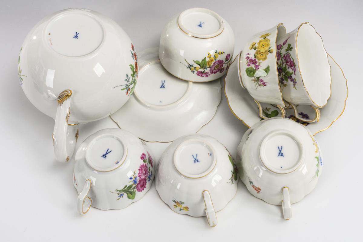 Tea service with floral painting. Meissen.