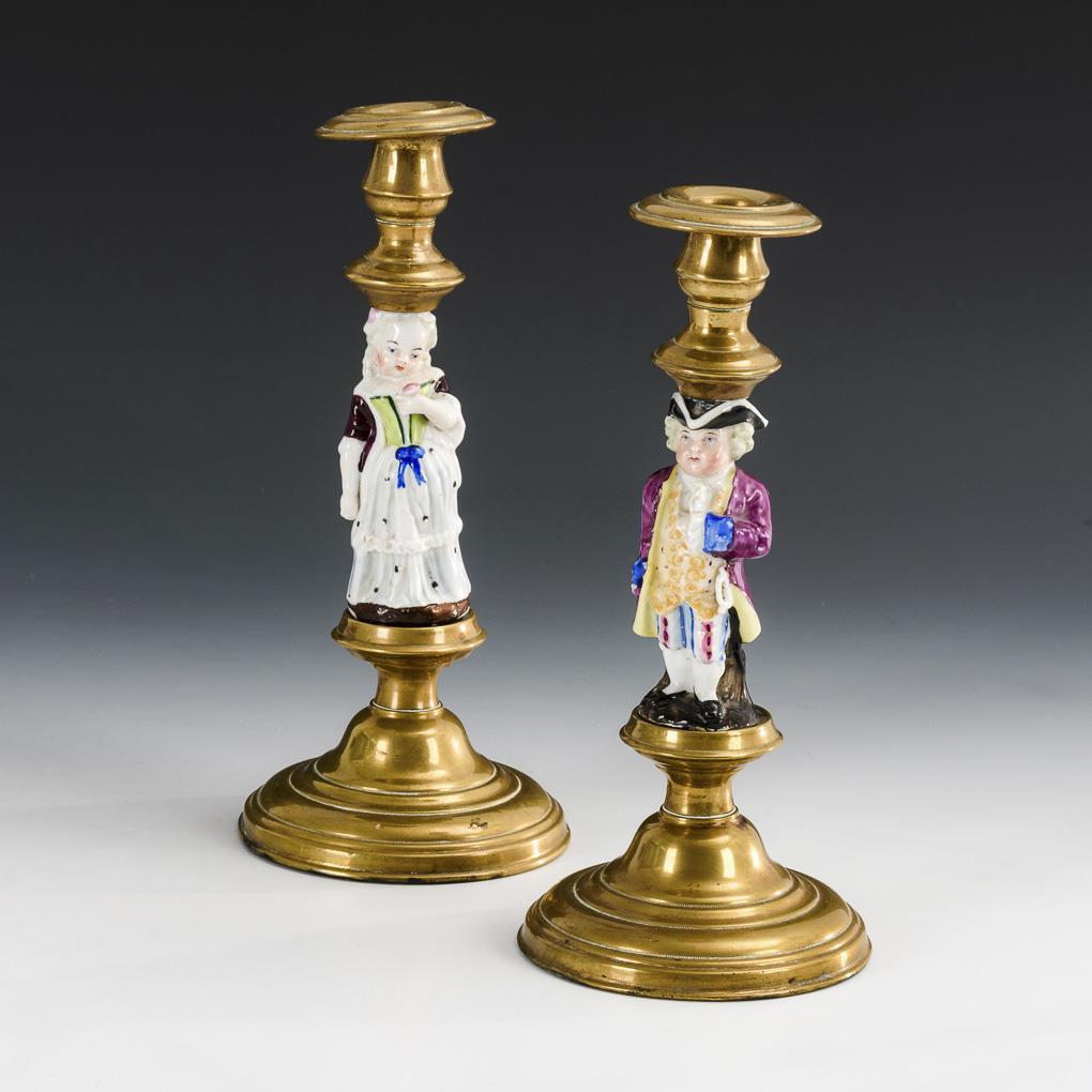 brass chandelier with the figures of a rococo boy and girl respectively as the stem. 1 spout crooked.