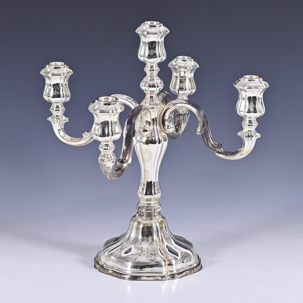 Large 5-flame silver chandelier. Deyhle Brothers, Schwäbisch Gmünd.