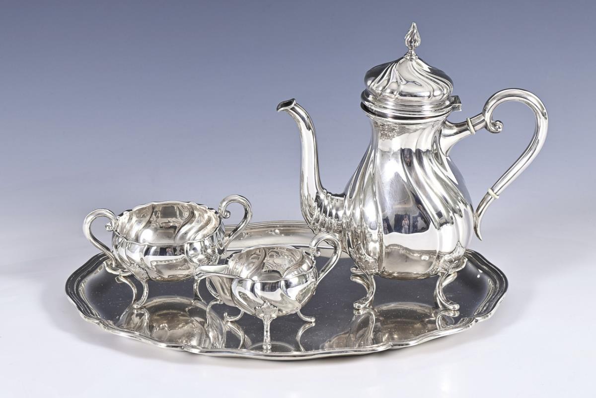 3-piece godroned centerpiece, on matching supplemented tray. Signs of use, tray with scratches.