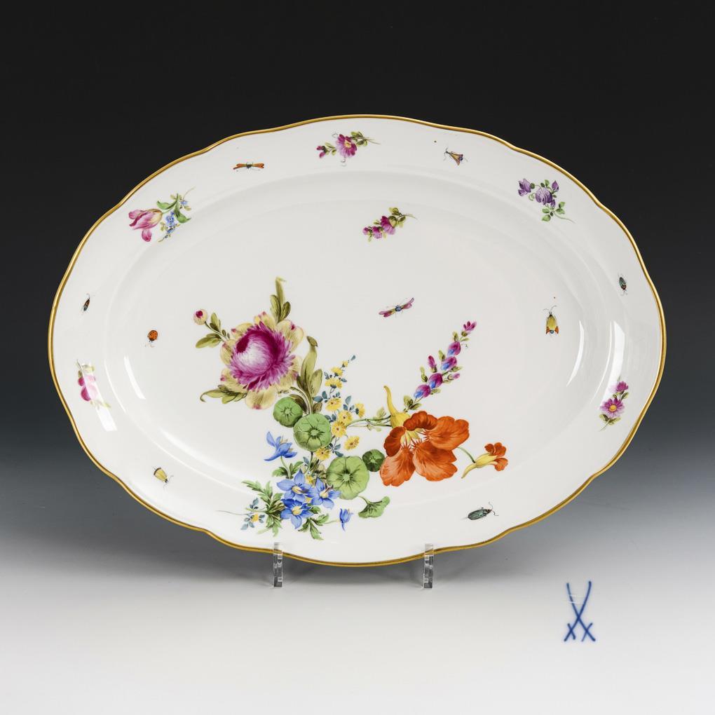 Oval plate with floral and insect painting. Meissen.