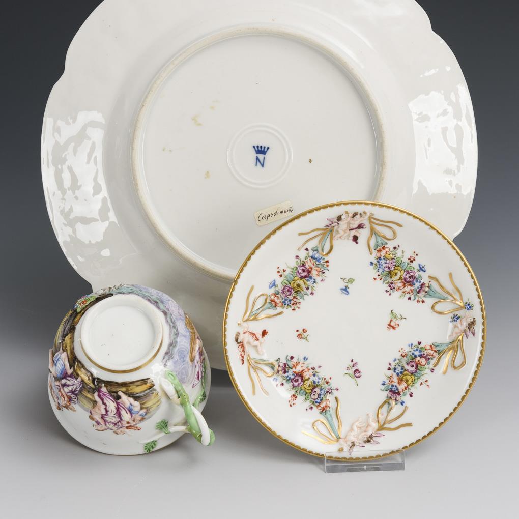 Plate and cup with capodimonte decor.