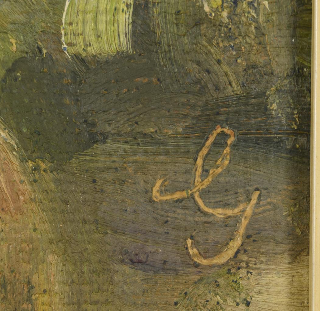 Oil/painted cardboard. Monogrammed in the upper right corner.