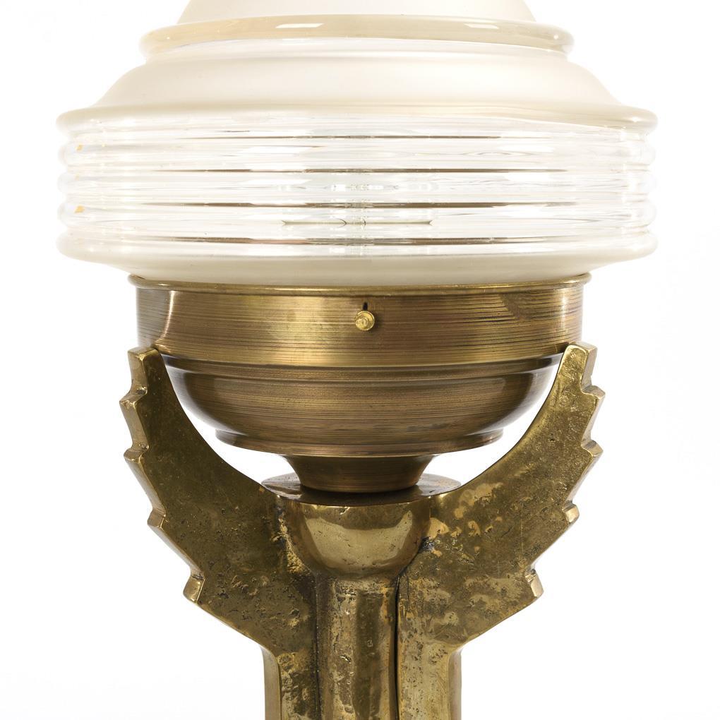 Bronze casting, sheet brass, frosted clear glass with star cut. H 46 cm.