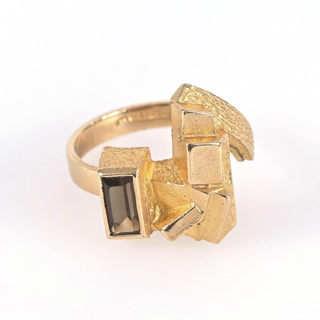 Finnish designer ring with smoky quartz. Kalevala Koru, Helsinki.