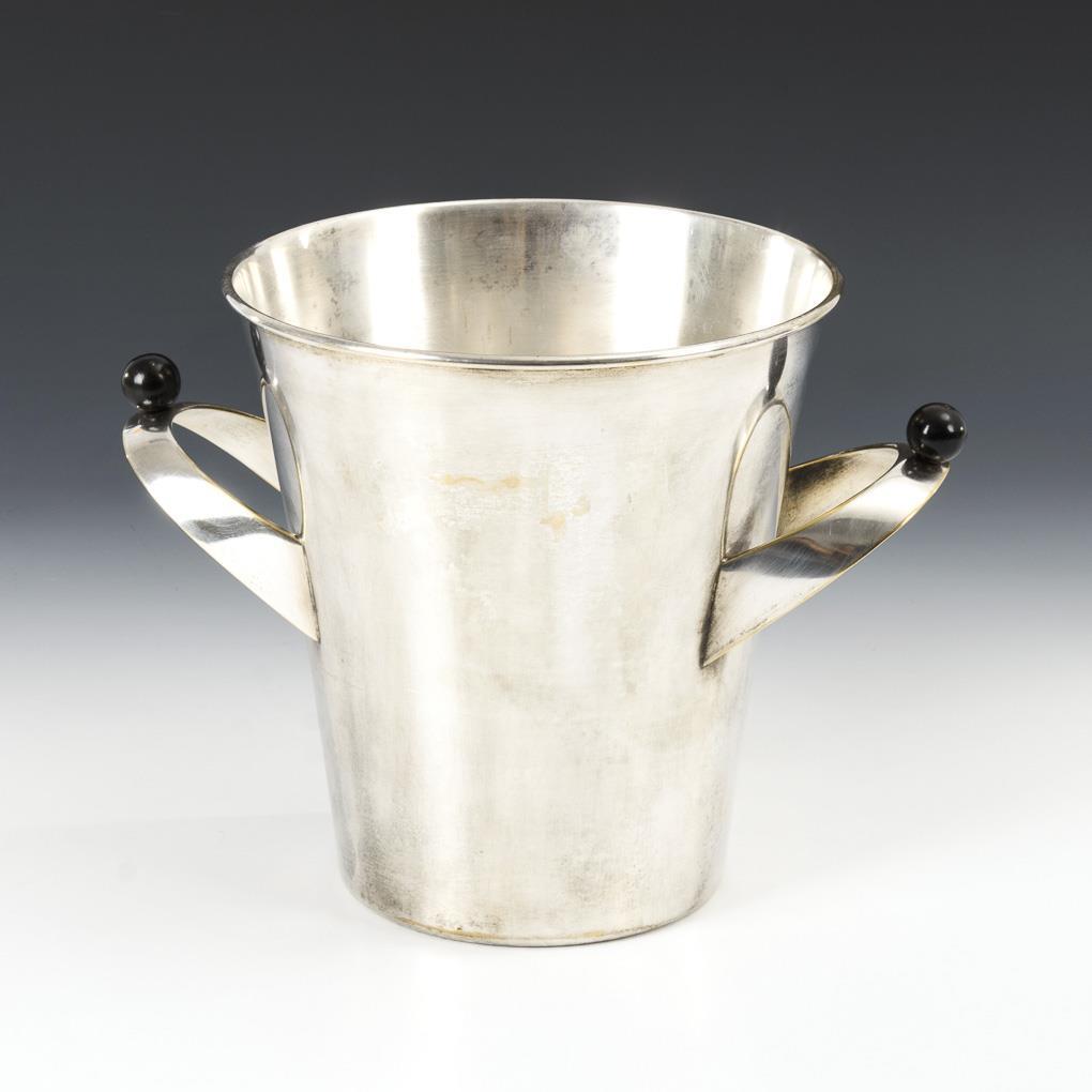 Silver plated metal, ebonized wood. H 22 cm, Ø 21 cm (without handles).