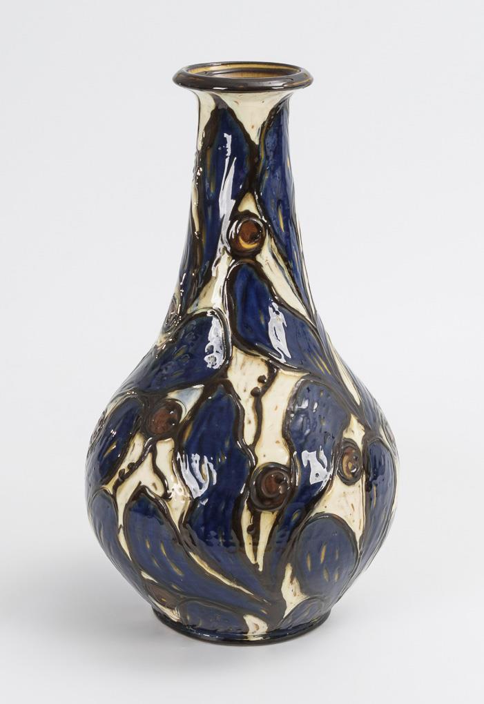 Large Art Nouveau vase with blue leaves. Herman August KÄHLER (1846-1917 Naestved).
