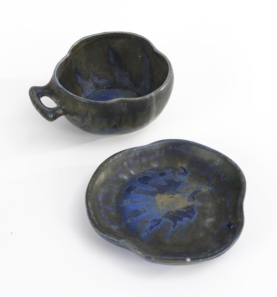 4 rare French art ceramic cups with saucers. Gilbert MÉTÉNIER (1876-after 1940) / Grès d'Art Méténier, Gannat.