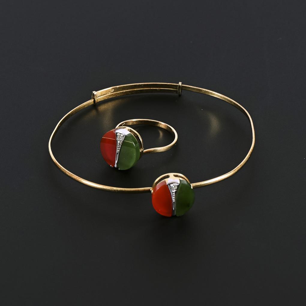 Bracelet and ring with jade, carnelian and diamonds.