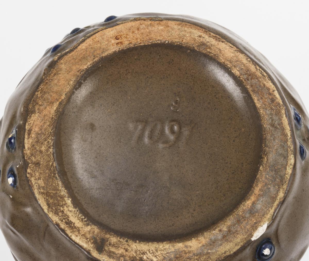 3 vases (H 14 to 19 cm), 2 bowls (Ø 15 and 17 cm) and 1 jug with mascaron (H 9.5 cm). Partially slightly bumped.
