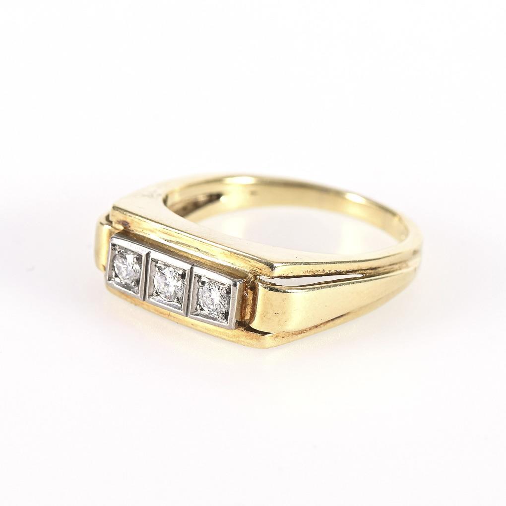 Yellow gold 585 stamped. Ring size 61. diamonds total approx. 0.24 ct. 8.9 g.