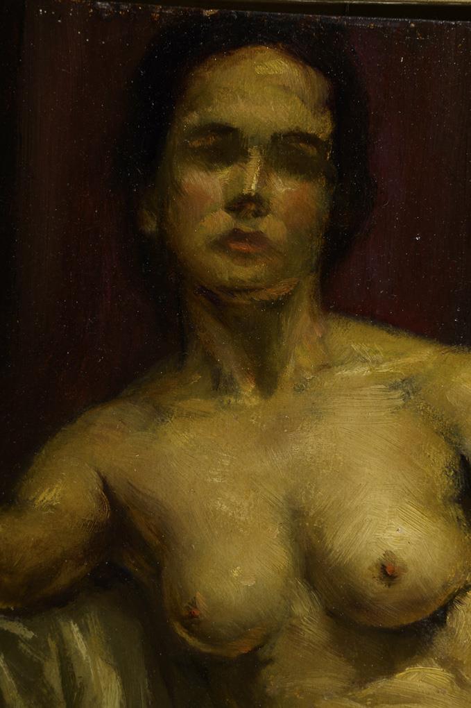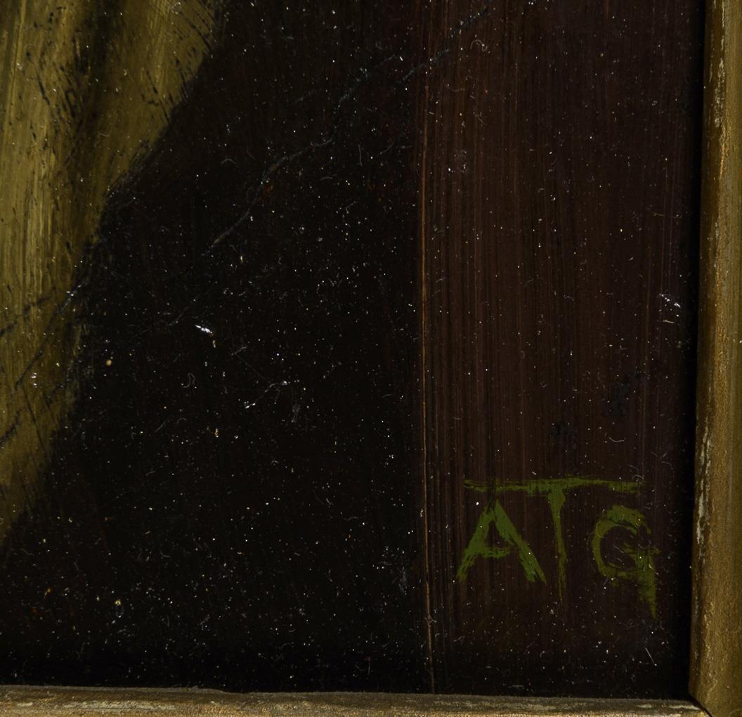 Oil/painted cardboard. Monogrammed lower right.