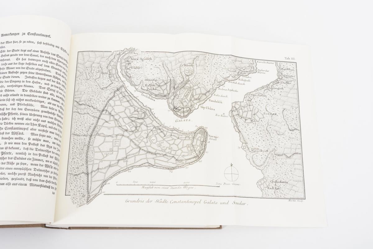 With numerous illustrations, tables and maps. Volume 3 contains: "Travels through Syria and Palestine, to Cyprus, and through Asia Minor and Turkey to Germany and Denmark. With Niebuhr's astronomical observations and some smaller treatises ...". (Reprint of the edition published by Nicolaus Möller, Copenhagen and Friedrich Perthes, Hamburg. Linen covers. Almost as new.