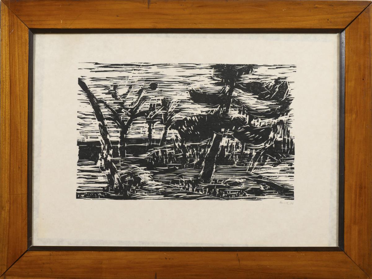 Woodcut on Japanese paper. Pencil signature. [19]76.