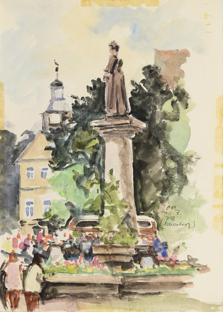 Each watercolor. Each signed or monogrammed lower right with location. Dated: 5.9.(19)71 as well as twice 14.7.(19)73.