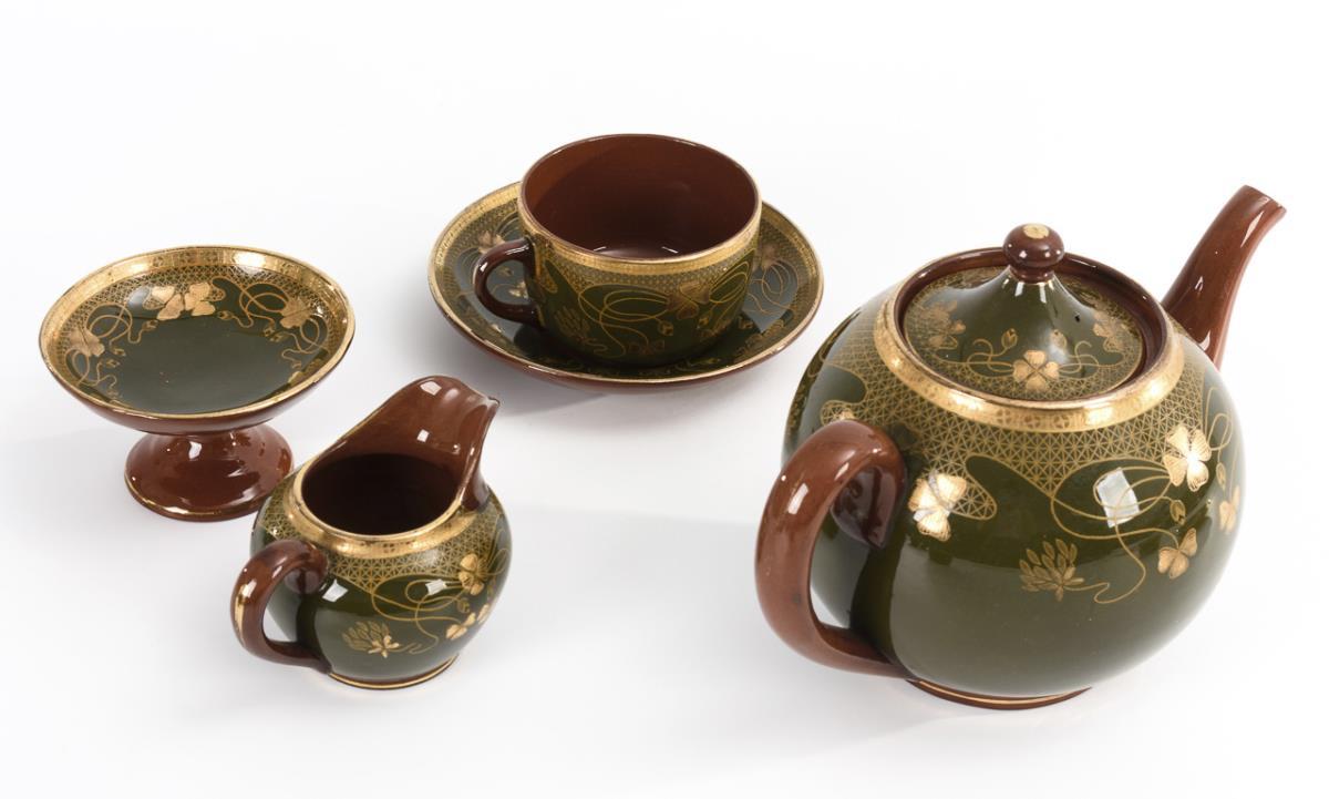 Art Nouveau tea set with shamrock decoration. Sarreguemines.