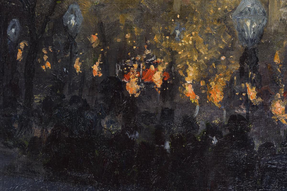 Scheming torchlight procession with much audience between the houses. Minimal signs of age.