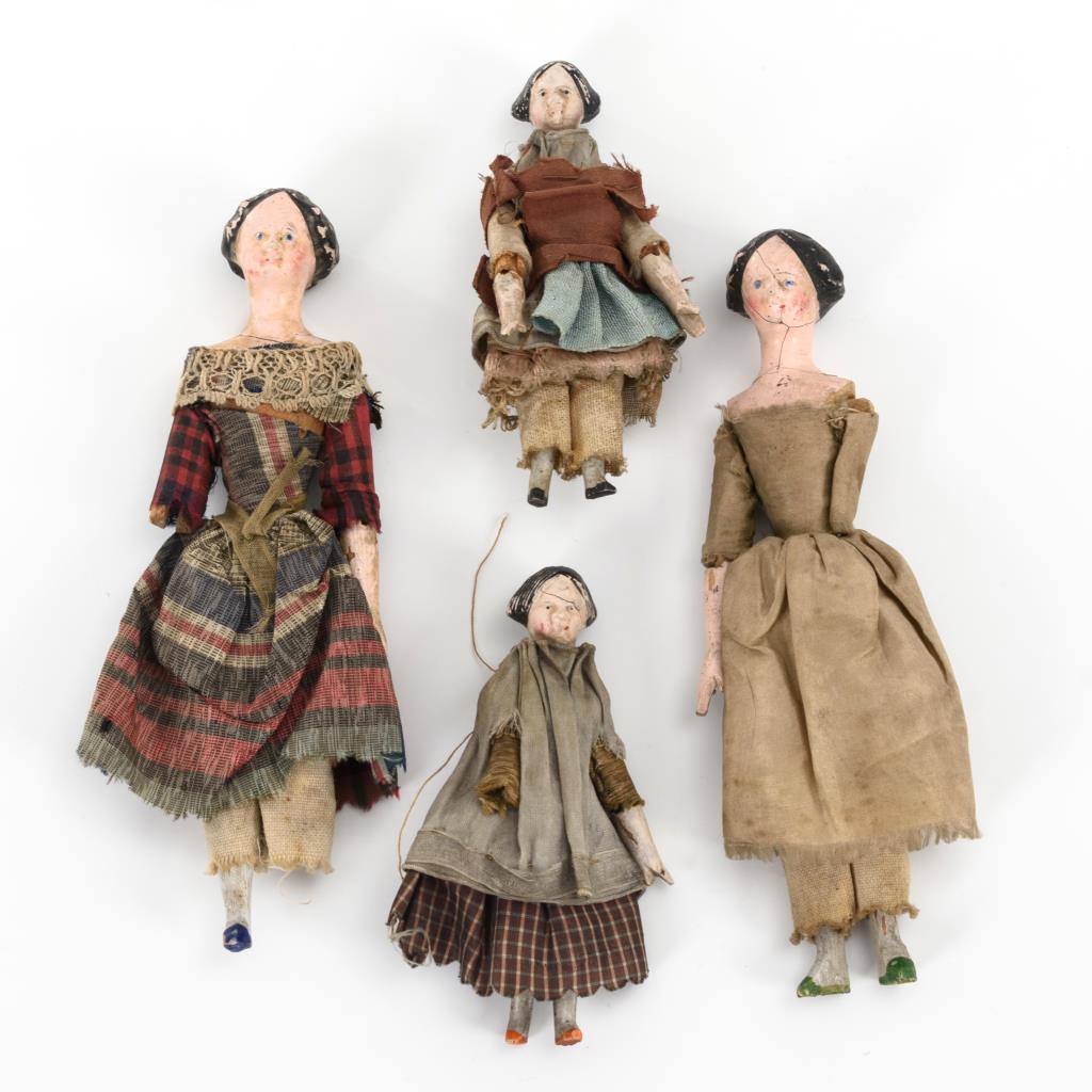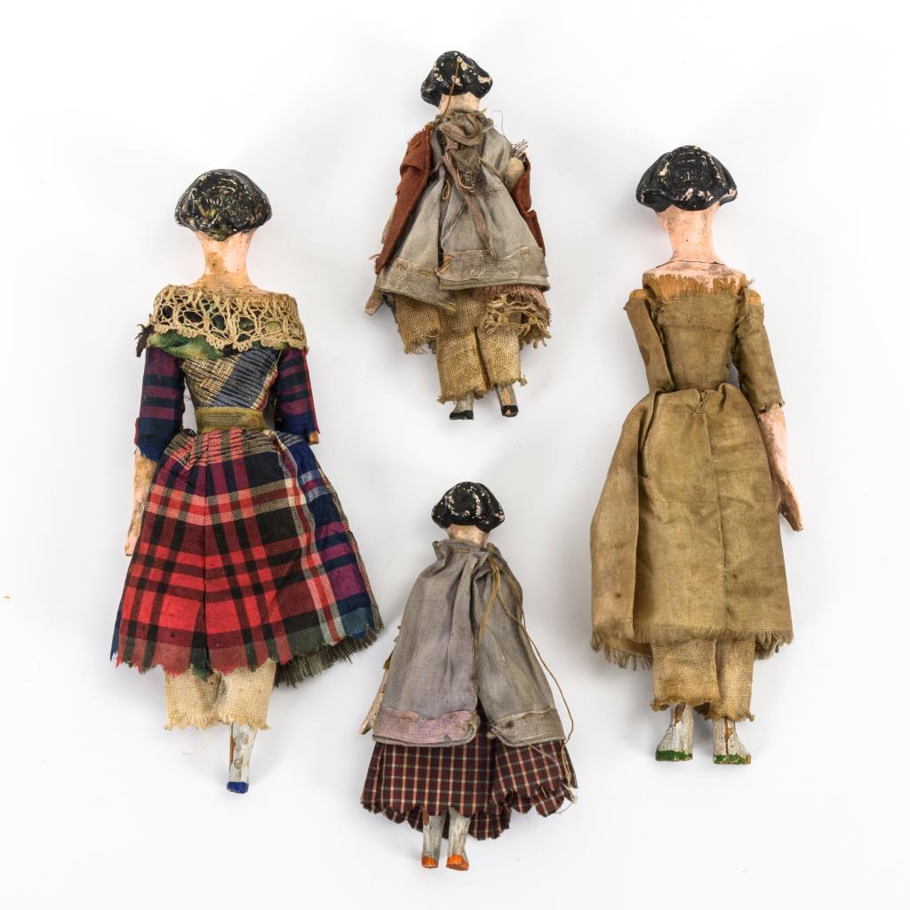 4 seltene Biedermeier-Holzpüppchen