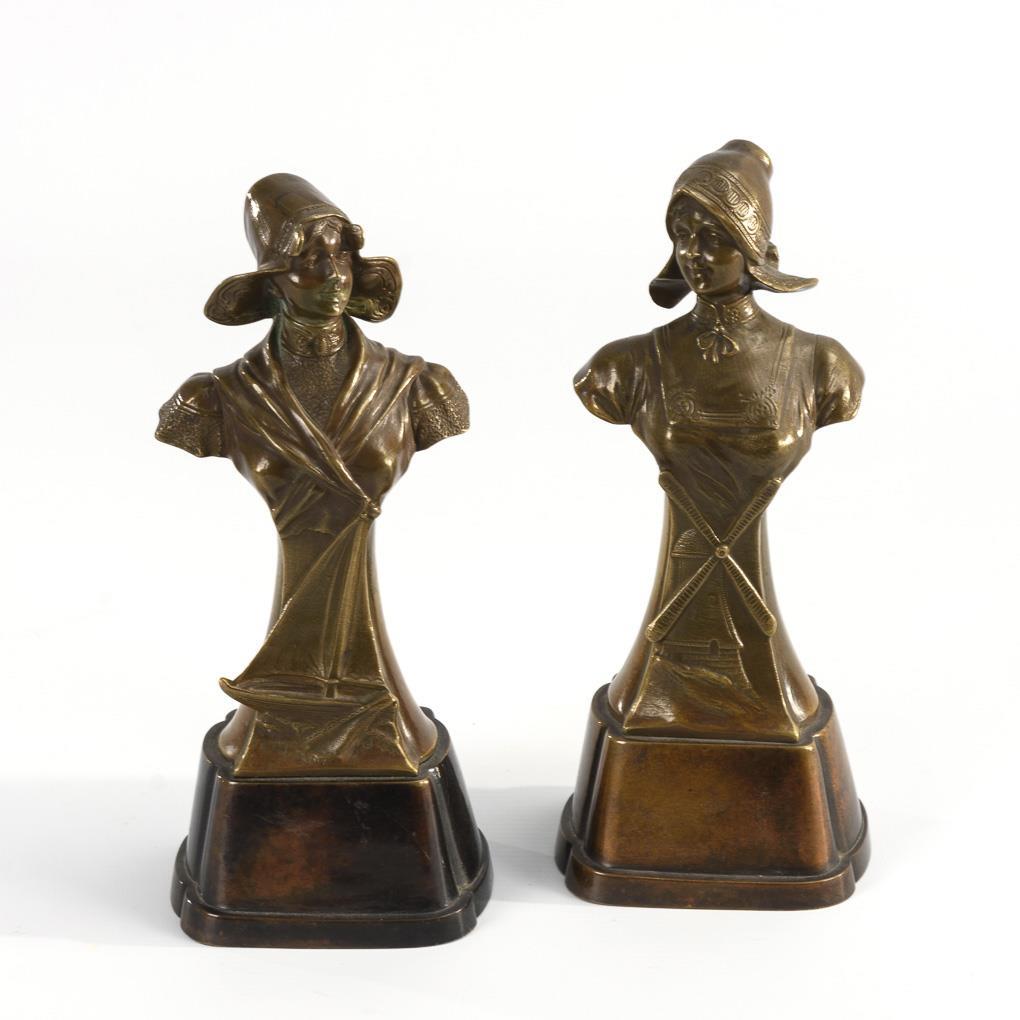 On a base with hermelike shaft differently designed young women; on the shaft a sailboat or a windmill as a relief. Patina each rubbed, 1x minor verdigris.