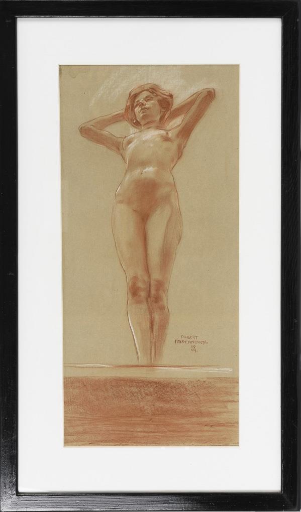 Red chalk drawing with white heightening, pencil. Red chalk signature. 1904.