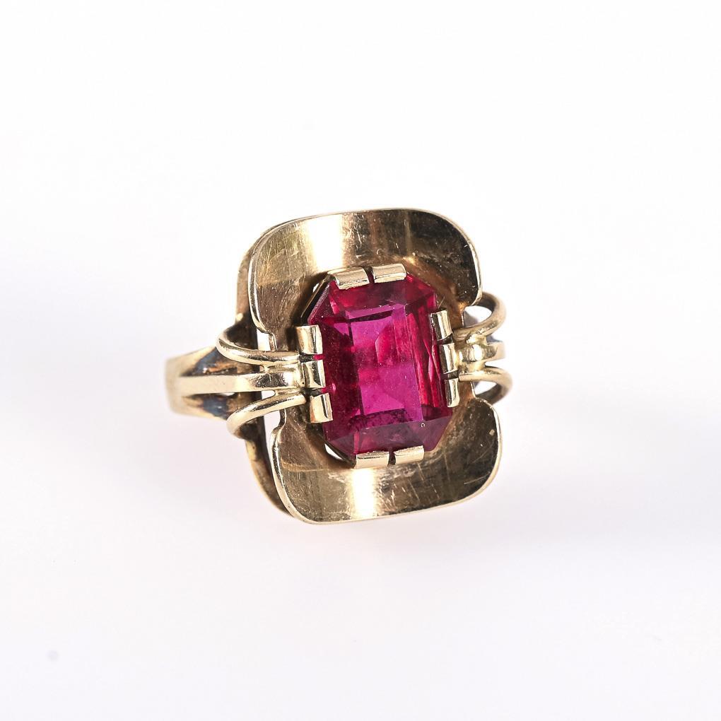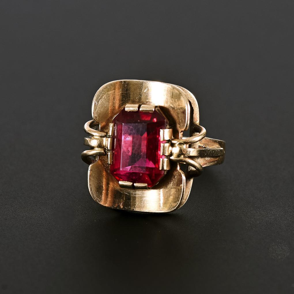 Ring with synthetic ruby.