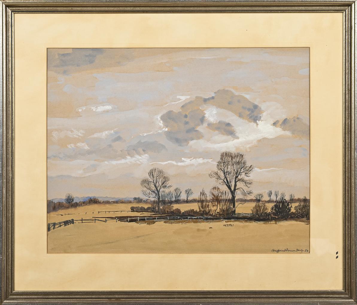 Gouache/Watercolor. Signed lower right. Dated: (19)54.