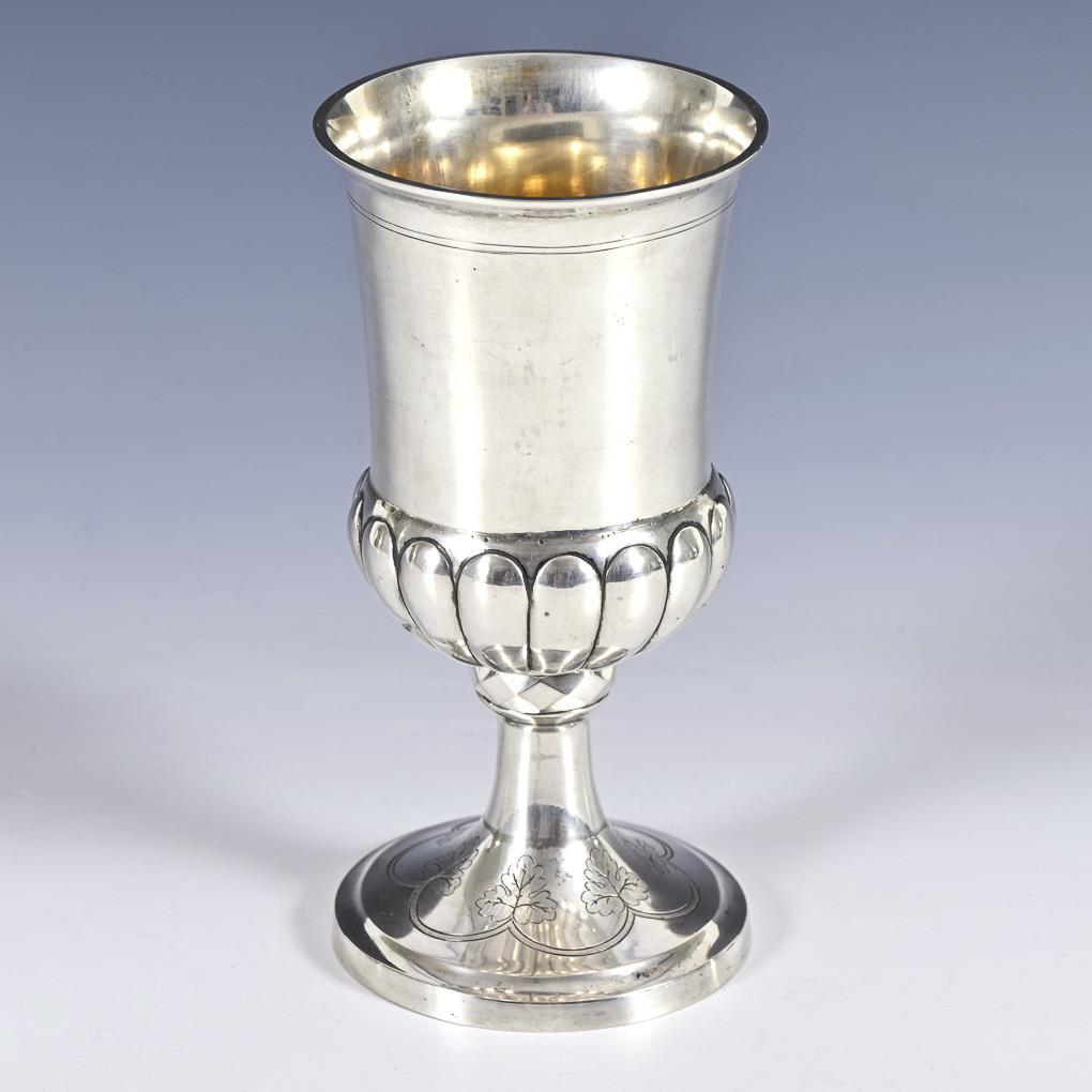 Biedermeier foot cup with dedication engraving: "Zum Andencken an Liebe und Treue". Gilded. 2 dents on the body inside.