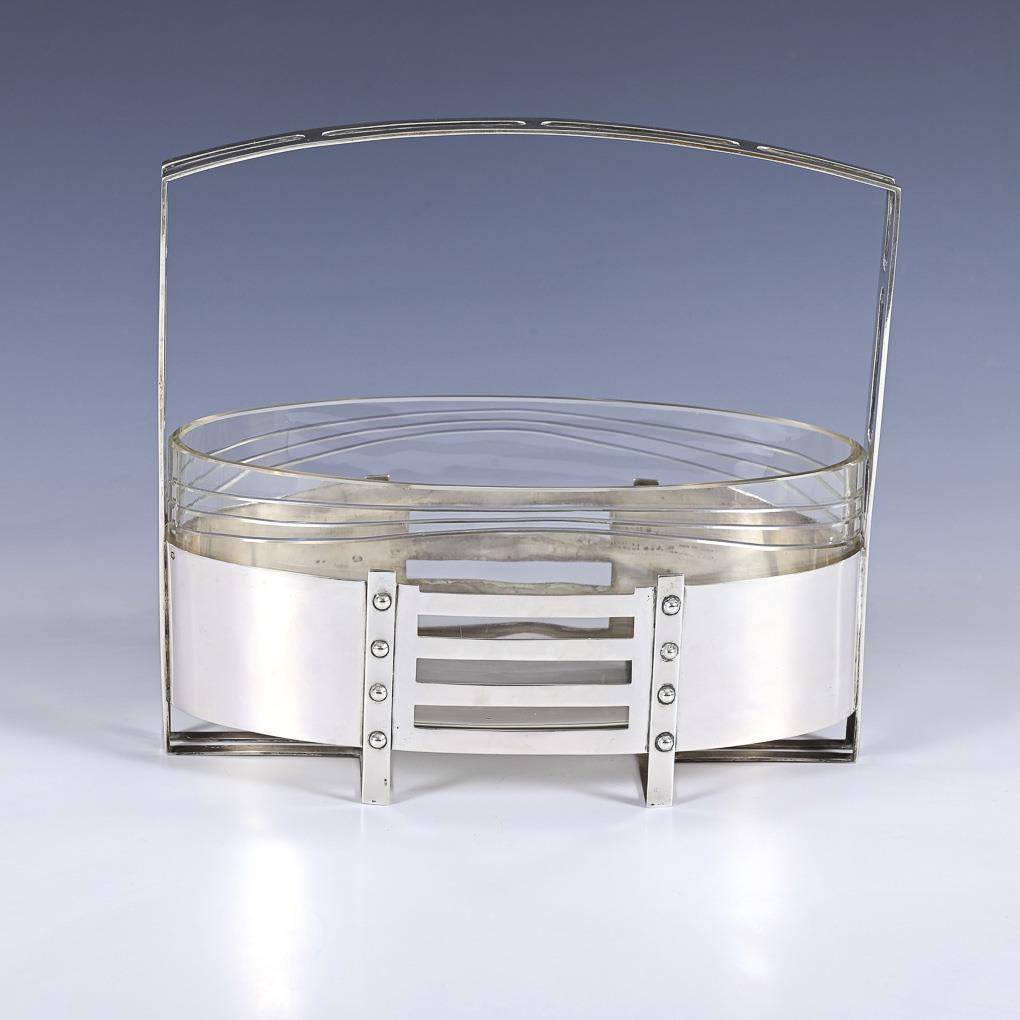 Art Nouveau silver basket with glass insert.