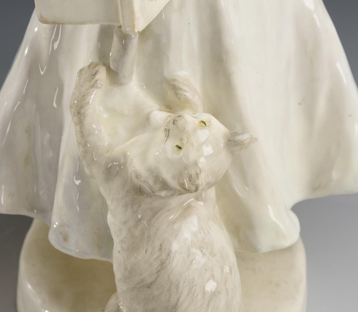 Biedermeier girl with cat. Viennese manufacture Friedrich Goldscheider.