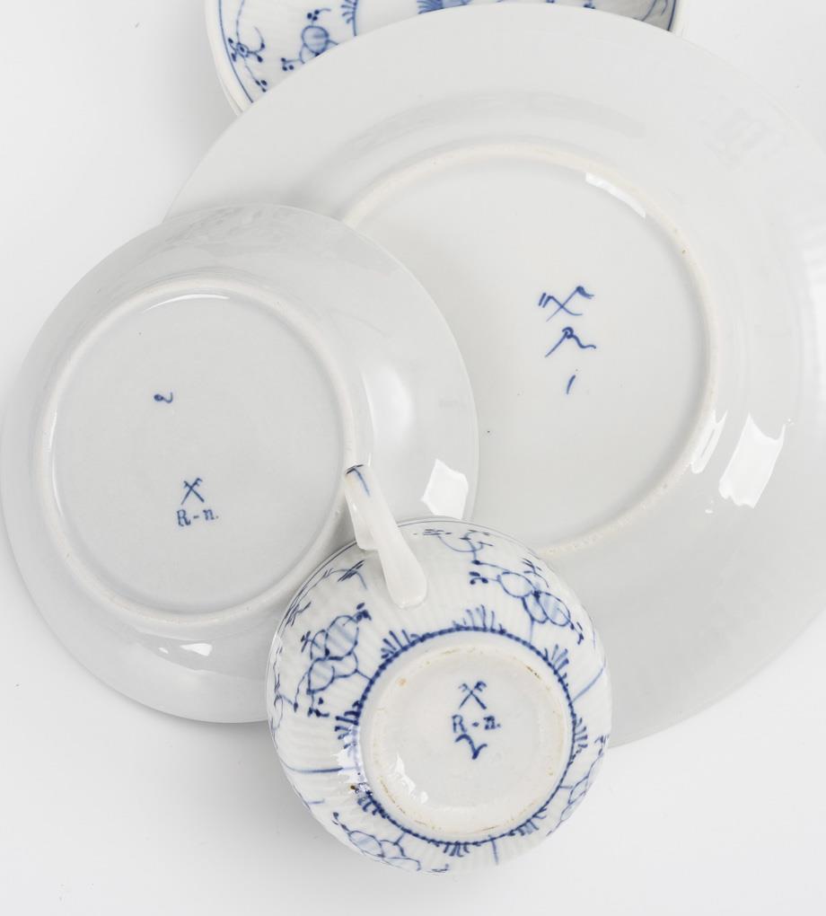 flag mark Rn, circa 1900, 3 saucers unmarked.