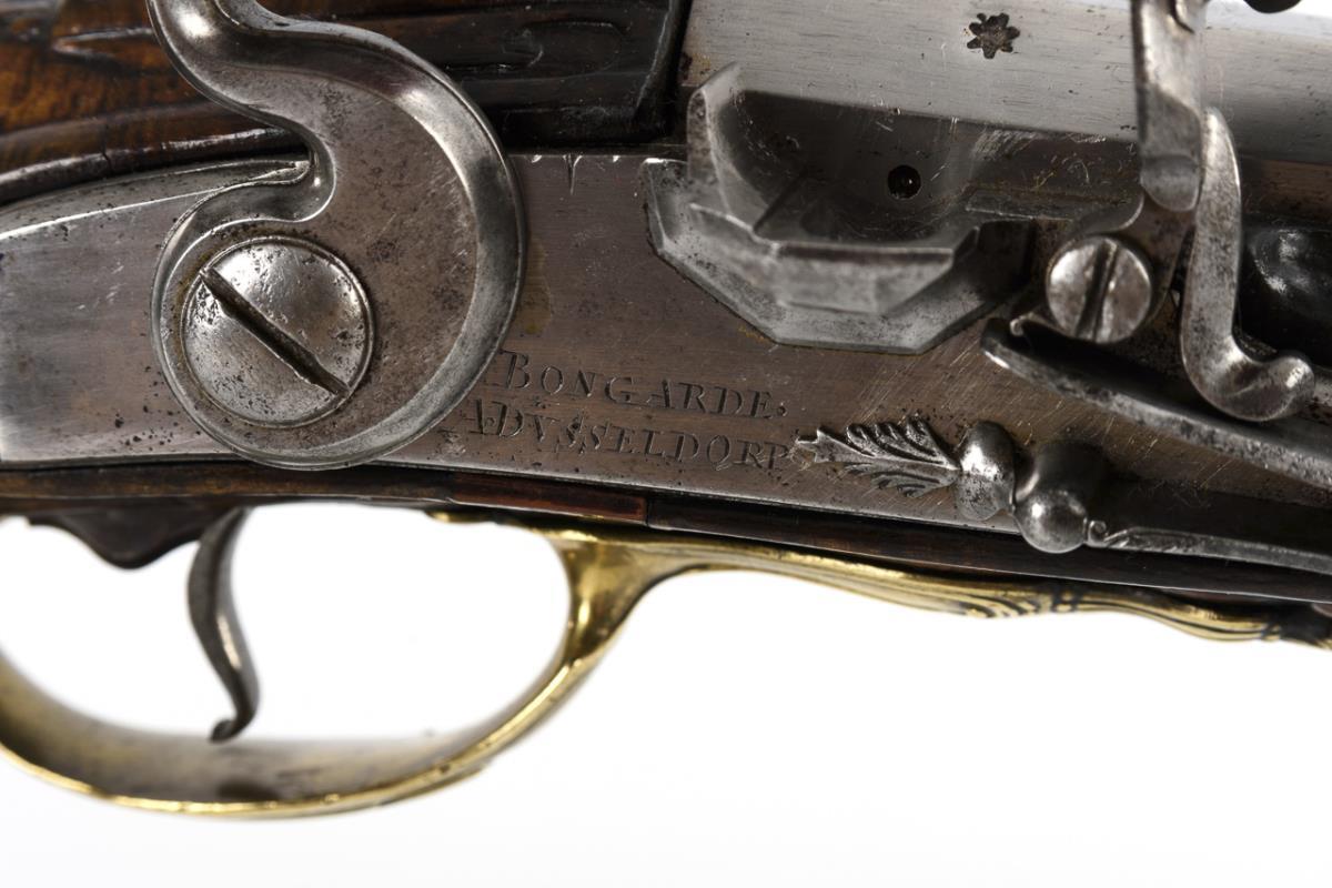 On the lock: "Bongarde A Düsseldorp" / On the barrel gilded marks for Alonzo Martinez and standing figure with lance. Circa 1730.