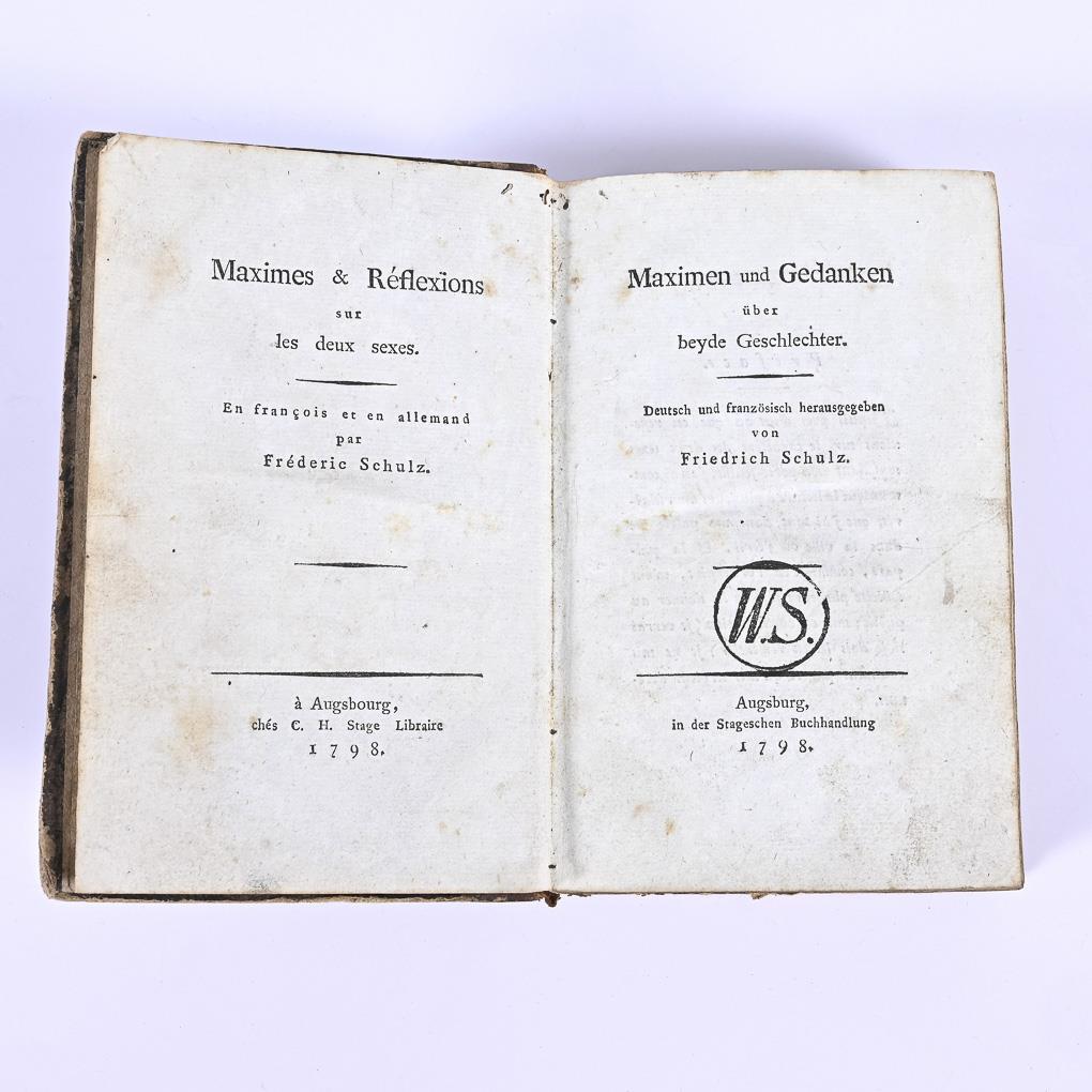 Juxtaposed texts in French and German, on the eternal theme of men and women. 401 pages in half leather binding. Signs of use.